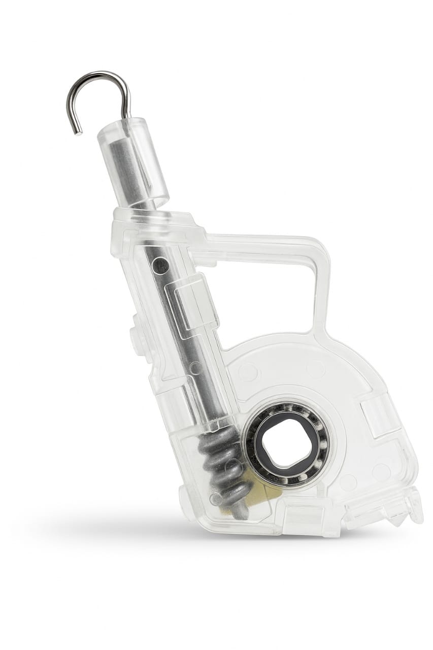 Mecanismo articulado que permite rotação e ajuste, ideal para cortinas com controle de abertura direcional.
